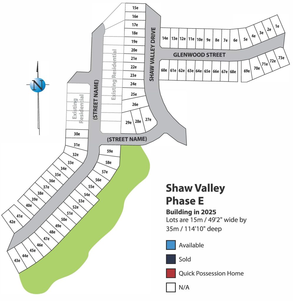 In this latest phase of the Shaw Valley community, we will be building condominiums. Perched on the edge of a tree lined ravine, this carefree enclave is perfectly located at the end of Old Course Road. Shaw Valley is the ideal mix of living close to every amenity while giving you a feeling of being in the country. A variety of one and two storey condos will be built with a choice of regular and pie shaped lots.