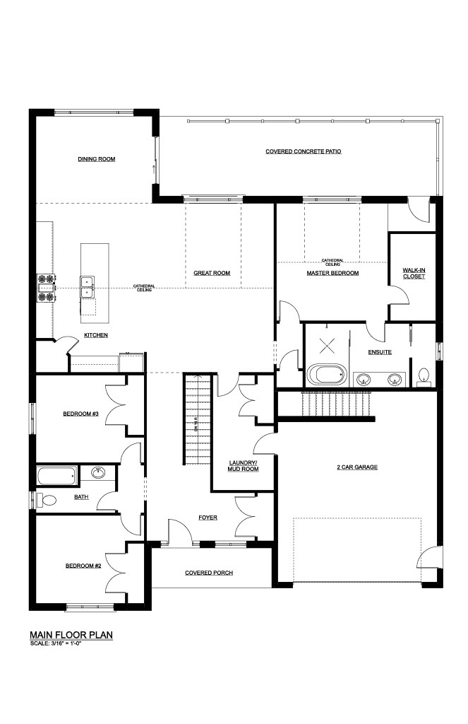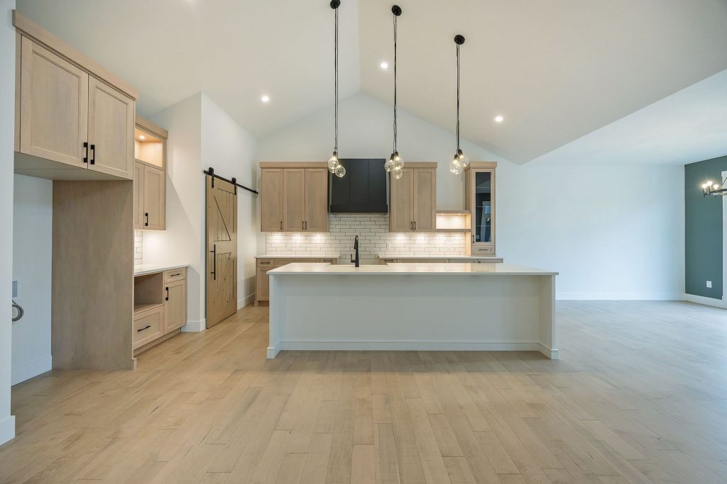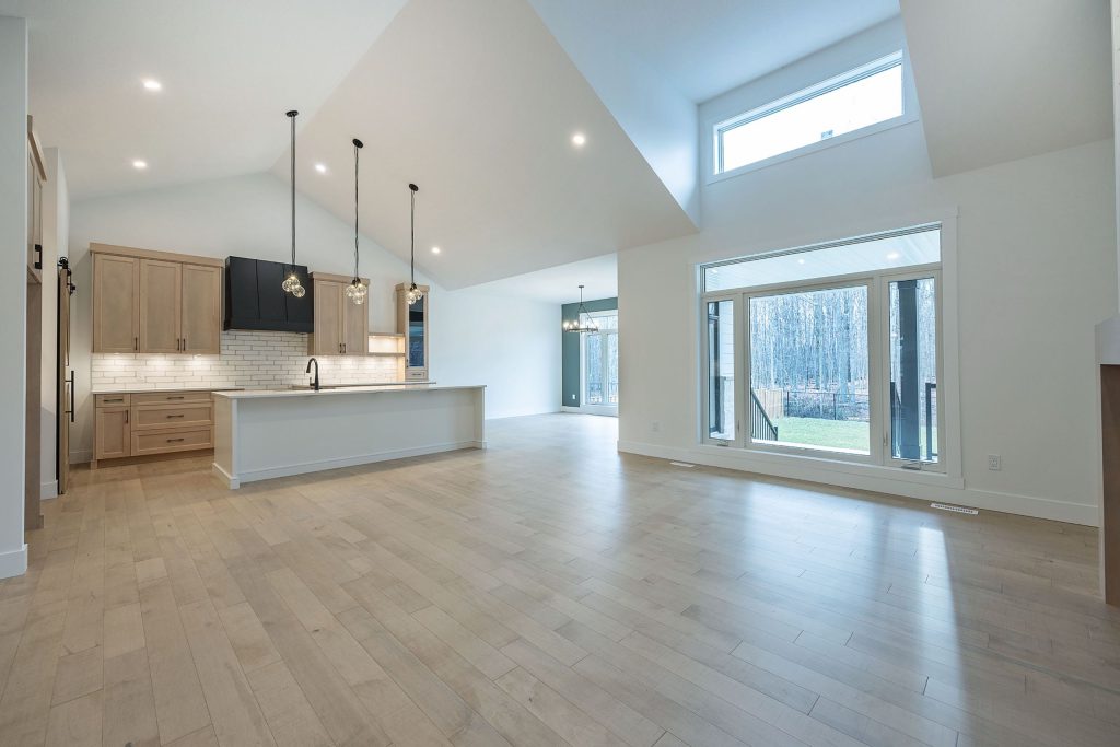 Large cathedral ceiling over the great room and kitchen area with a dormer