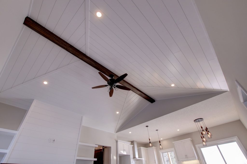 Ship-lap wood trimmed Cathedral Ceiling over the Great room