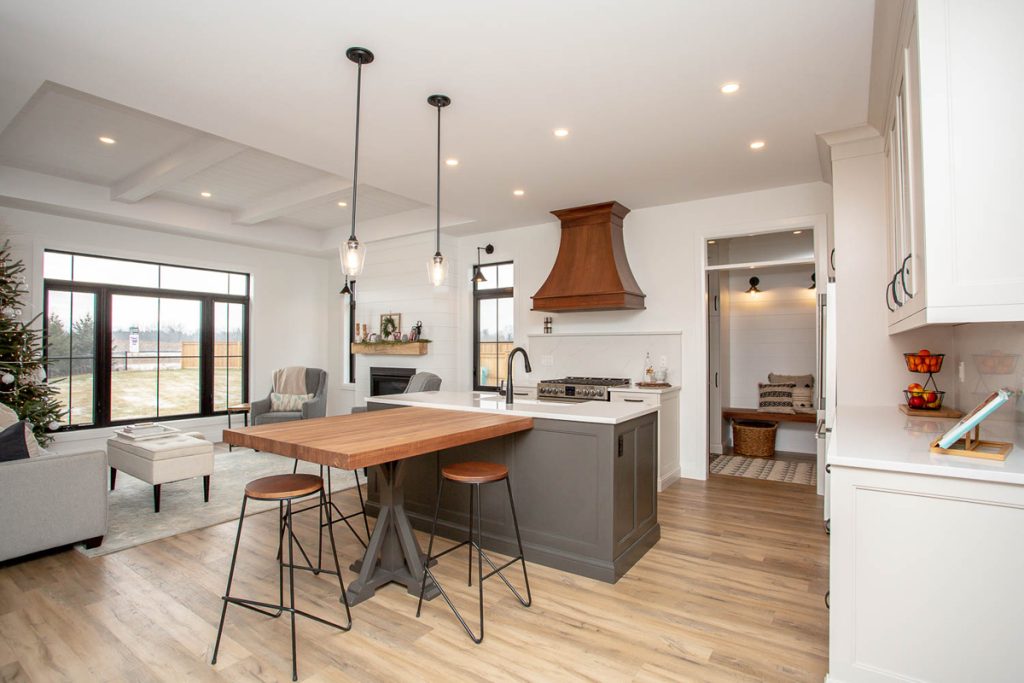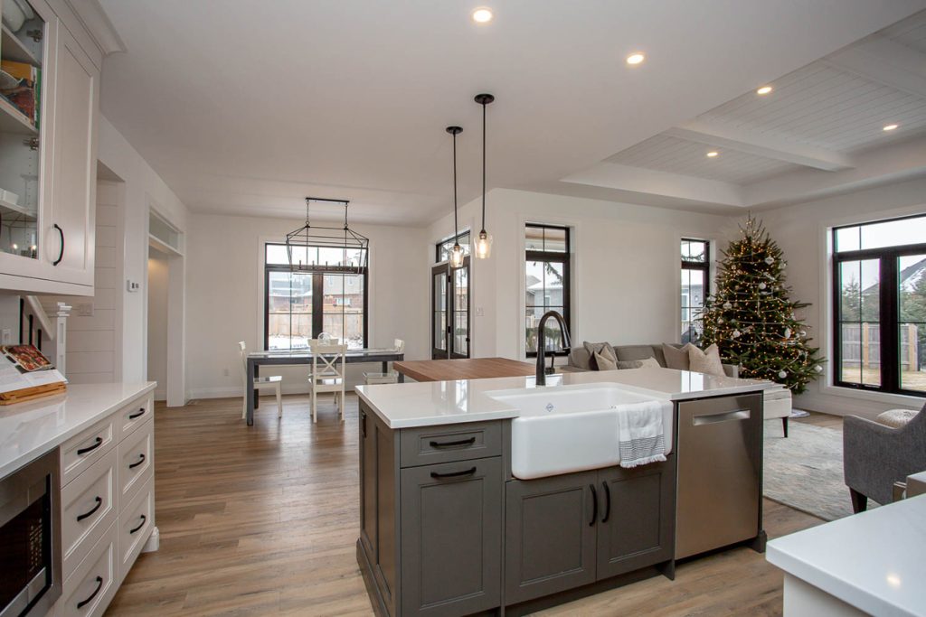 Open concept kitchen, great room, and dining area