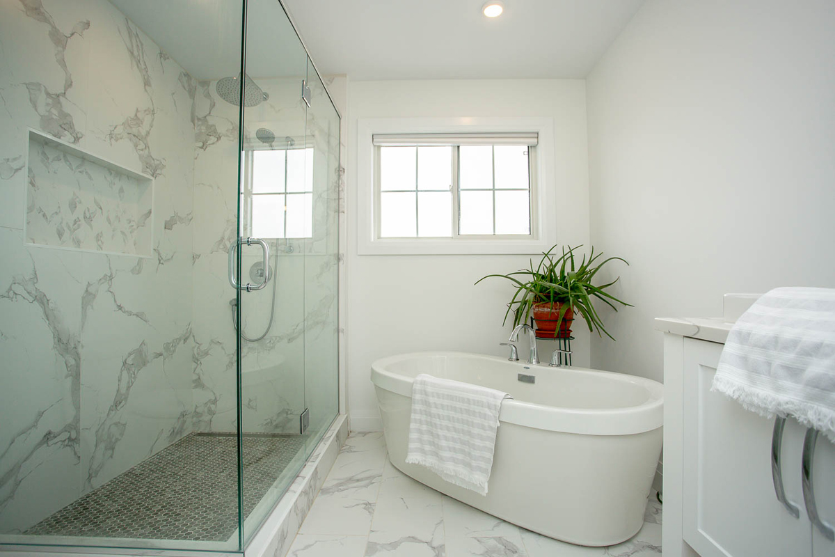 Primary bedroom includes a walk-in closet and tub/shower unit in the ensuite