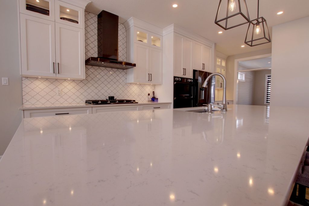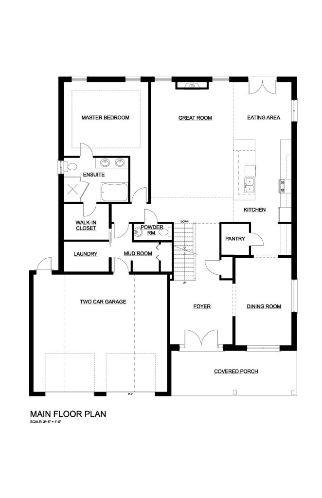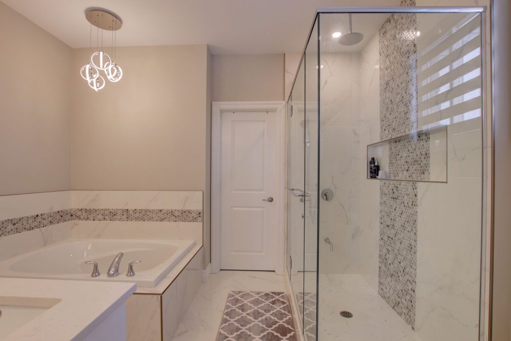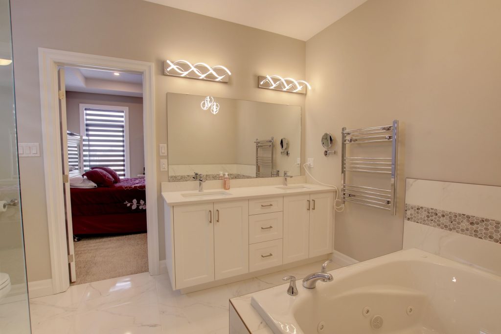 Five-piece ensuite off Master with custom tiled shower & soaker tub